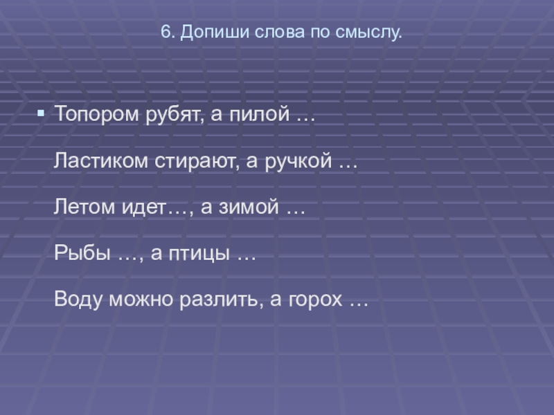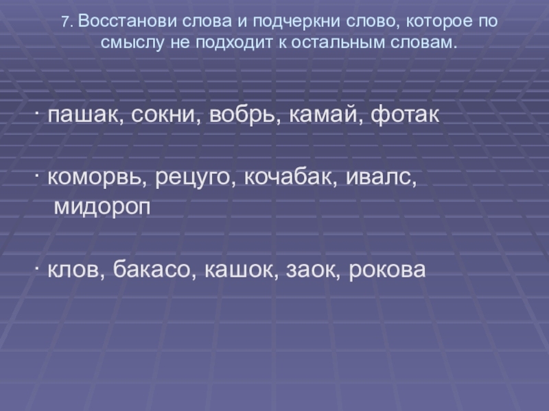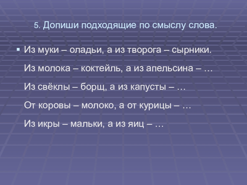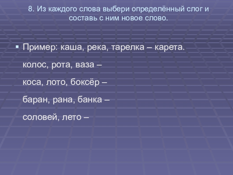 Пример: каша, река, тарелка – карета.