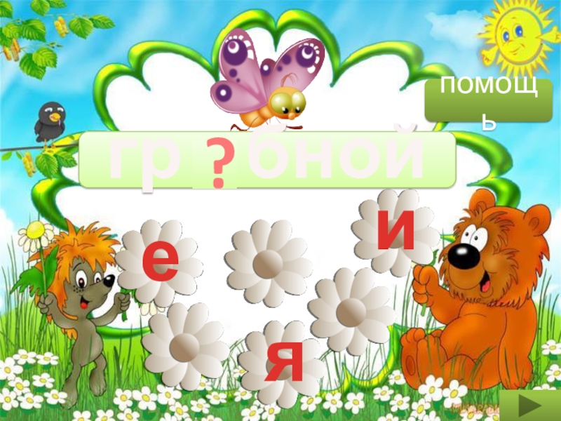 Помоги выбрать для бабочек ромашки с буквой так, чтобы слово было записано верно.
