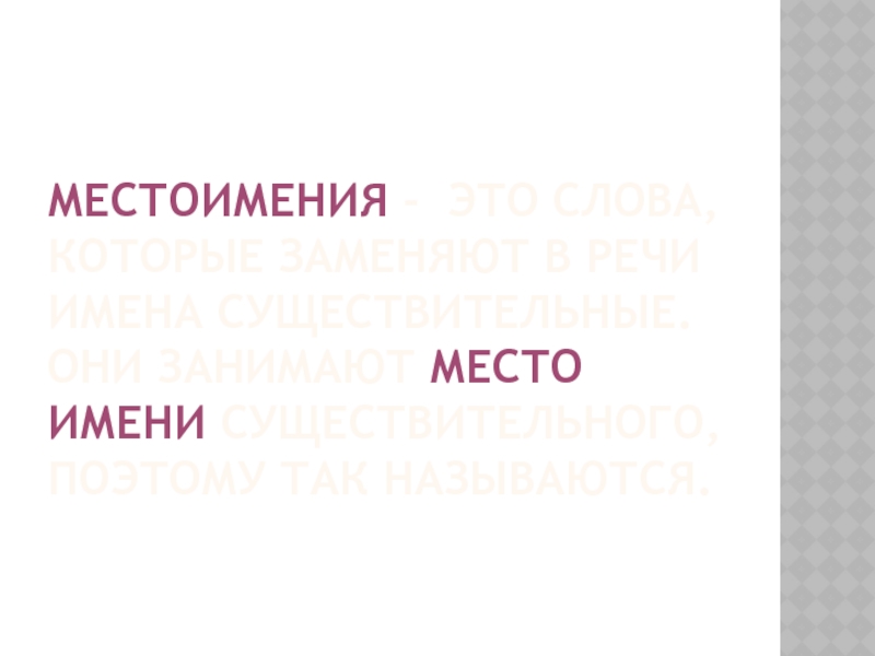 Местоимение – это часть речи, которая указывает на предметы, признаки но не называет их.