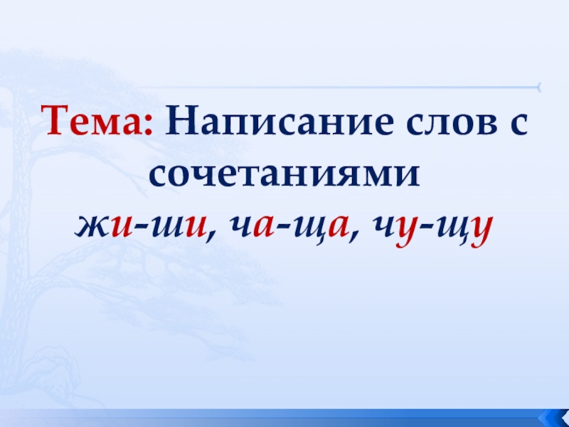 Слайд 14Тема: Написание слов с сочетаниями жи-ши, ча-ща, чу-щу