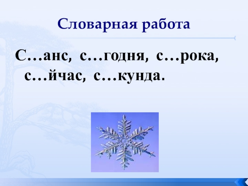 Словарная работаС…анс, с…годня, с…рока, с…йчас, с…кунда.