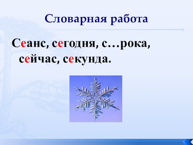 Словарная работаСеанс, сегодня, с…рока, сейчас, секунда.