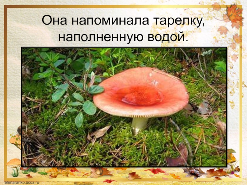 Слайд 15Сыроежка была такая огромная и такая старая. Края загнулись вверх.