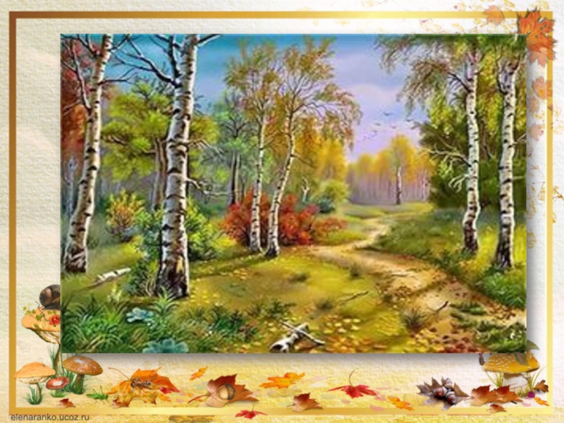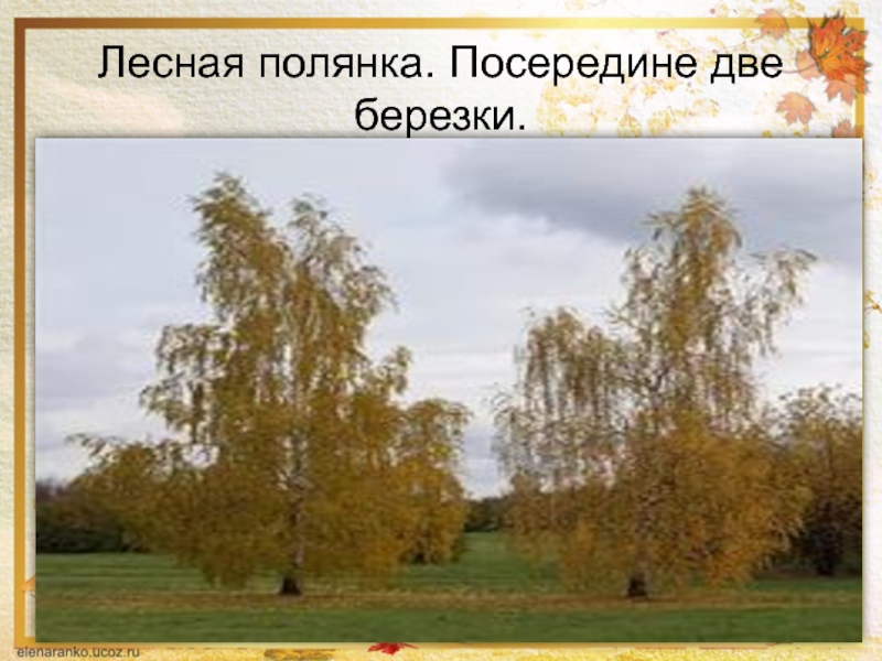 Слайд 11Лесная полянка. Посередине две березки.