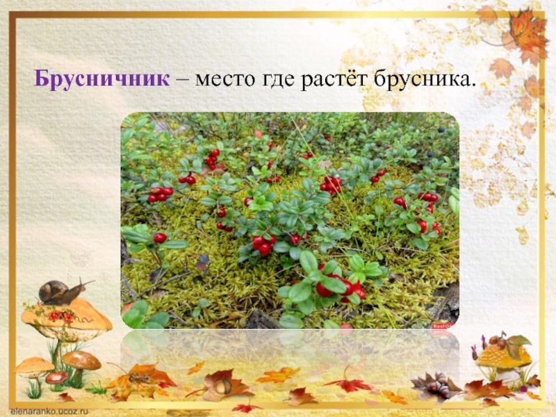 Слайд 9Брусничник – место где растёт брусника.