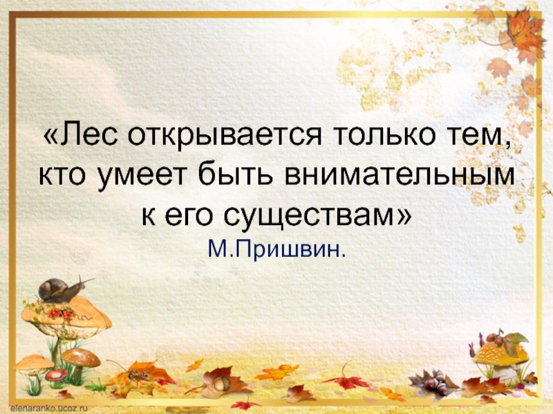 Слайд 4«Лес открывается только тем, кто умеет быть внимательным к его существам» М.Пришвин.