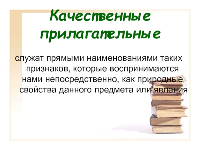 Качественные прилагательныеслужат прямыми наименованиями таких признаков, которые воспринимаются нами непосредственно, как природные свойства данного предмета или явления