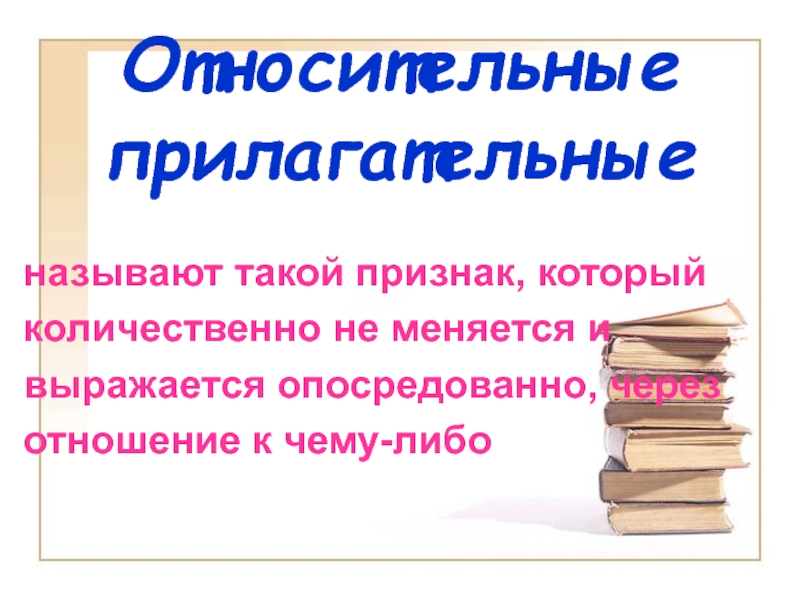 Относительные прилагательныеназывают такой признак, который количественно не меняется и выражается опосредованно, через отношение к чему-либо