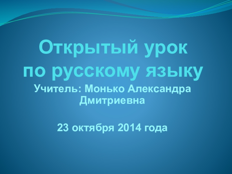 Открытый урок  по русскому языкуУчитель: Монько Александра Дмитриевна23 октября 2014 года
