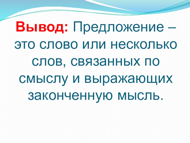 Вывод: Предложение – это слово или несколько слов, связанных по смыслу и выражающих законченную мысль.