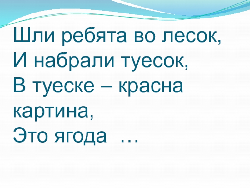 Слайд 4Шли ребята во лесок, И набрали туесок, В туеске – красна картина, Это ягода