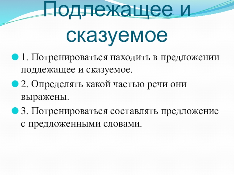 1. Потренироваться находить в предложении подлежащее и сказуемое.