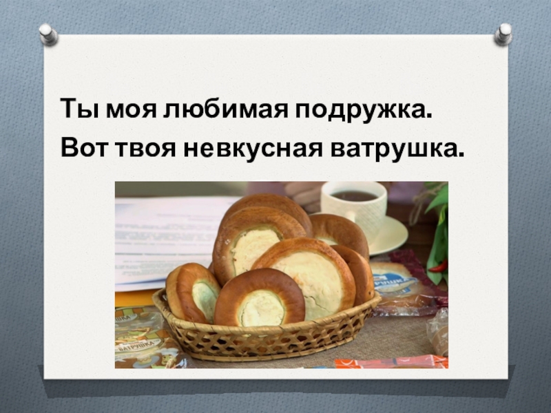 Ты моя любимая подружка.Вот твоя невкусная ватрушка.
