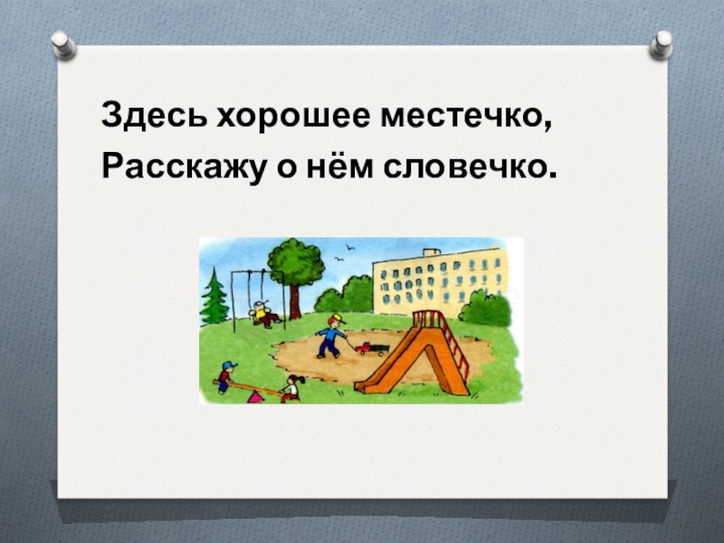 Здесь хорошее местечко,Расскажу о нём словечко.