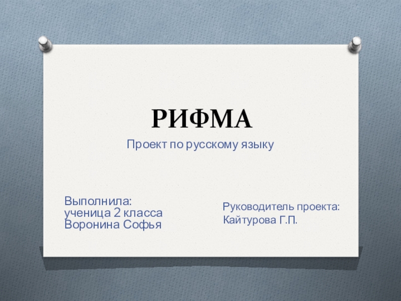 РИФМАПроект по русскому языкуВыполнила: ученица 2 класса Воронина СофьяРуководитель проекта:Кайтурова Г.П.