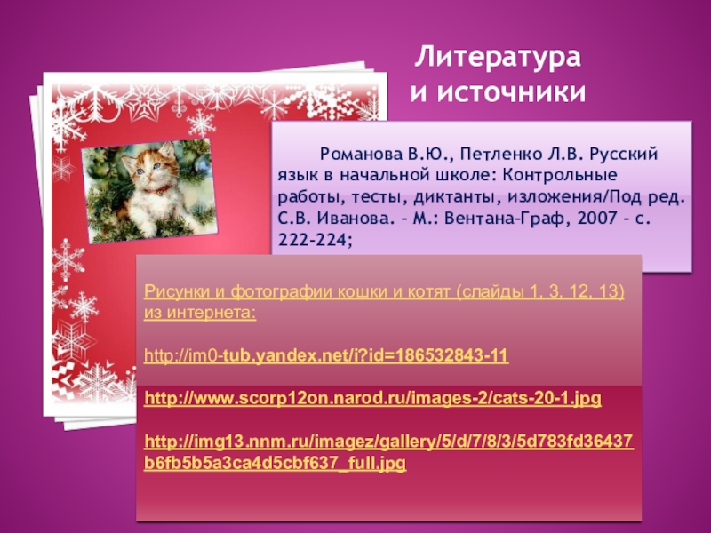 Рисунки и фотографии кошки и котят (слайды 1, 3, 12, 13) из интернета: