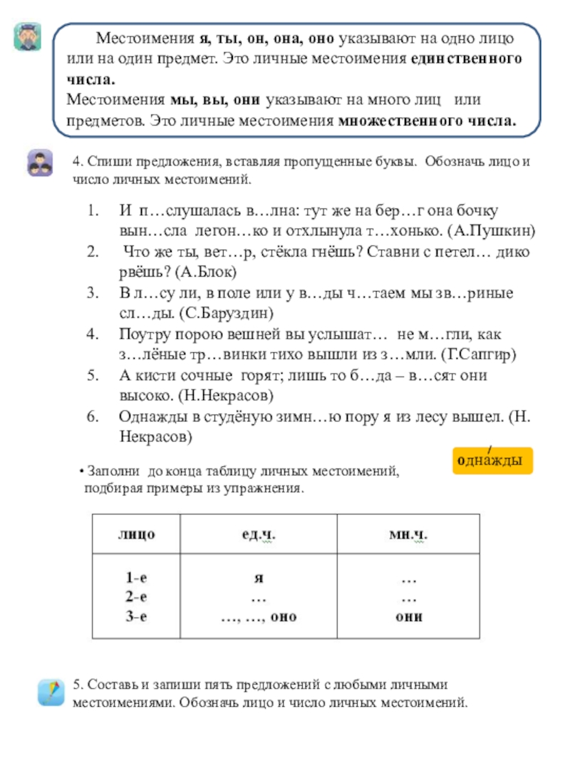 Ты узнаешь, какая часть речи называется местоимением; о личных местоимениях 1, 2, 3 лица.