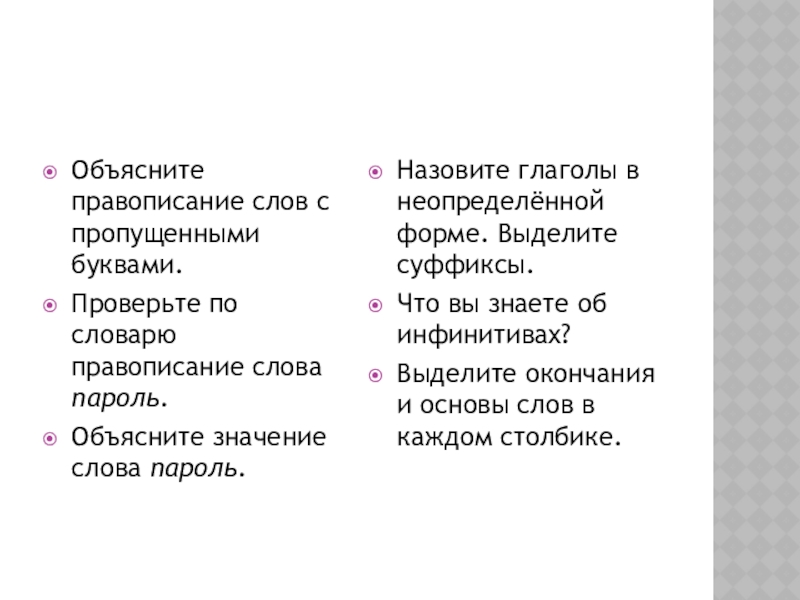 Назовите глаголы в неопределённой форме. Выделите суффиксы.
