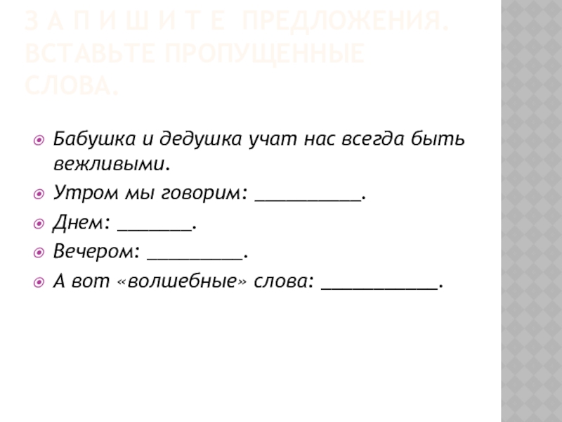 Бабушка и дедушка учат нас всегда быть вежливыми.