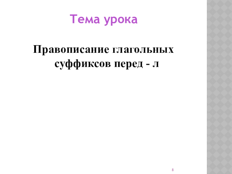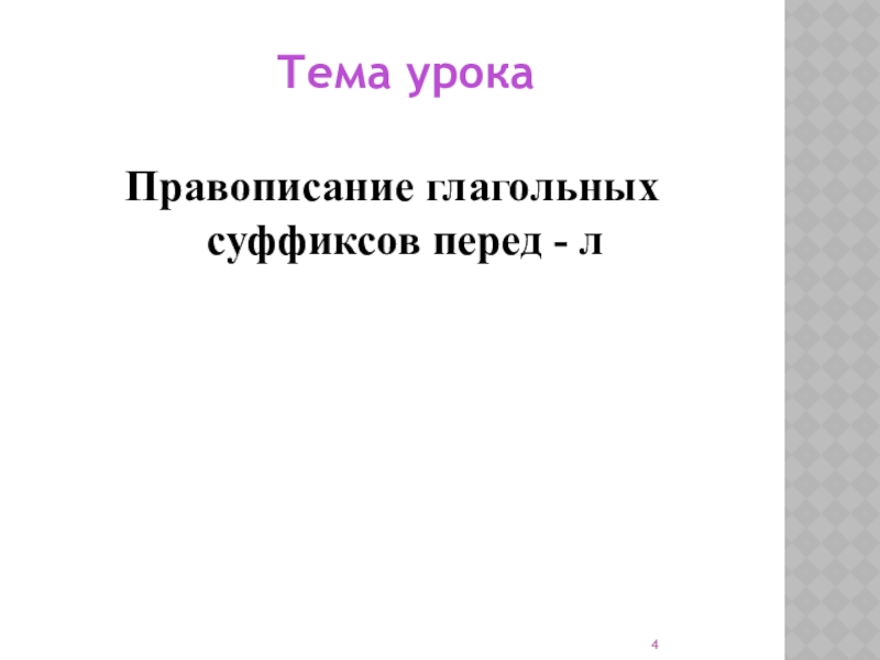 Тема урокаПравописание глагольных суффиксов перед - л