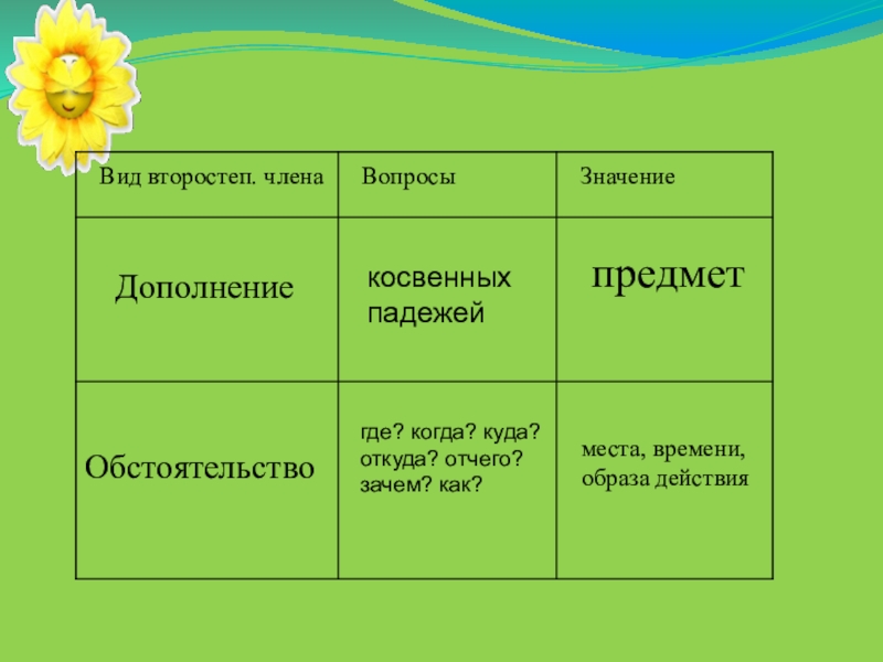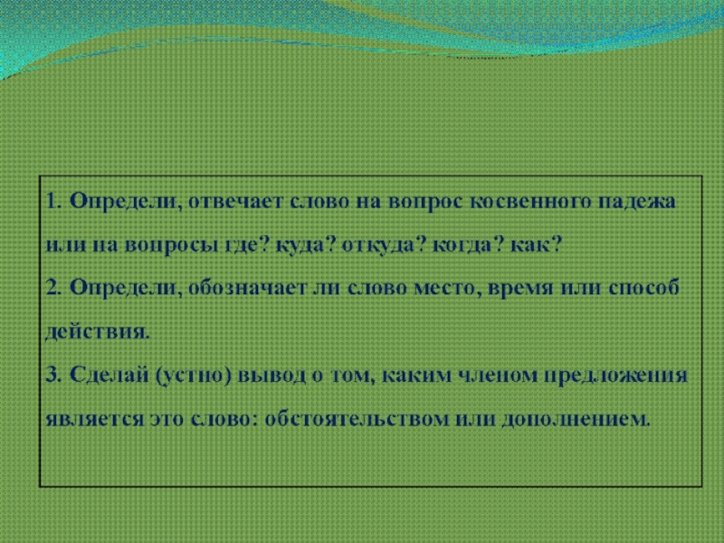 Обстоятельство – это второстепенный член предложения, который обозначает место, время, образ действия.