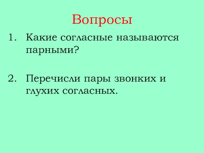 ВопросыКакие согласные называются парными?Перечисли пары звонких и глухих согласных.