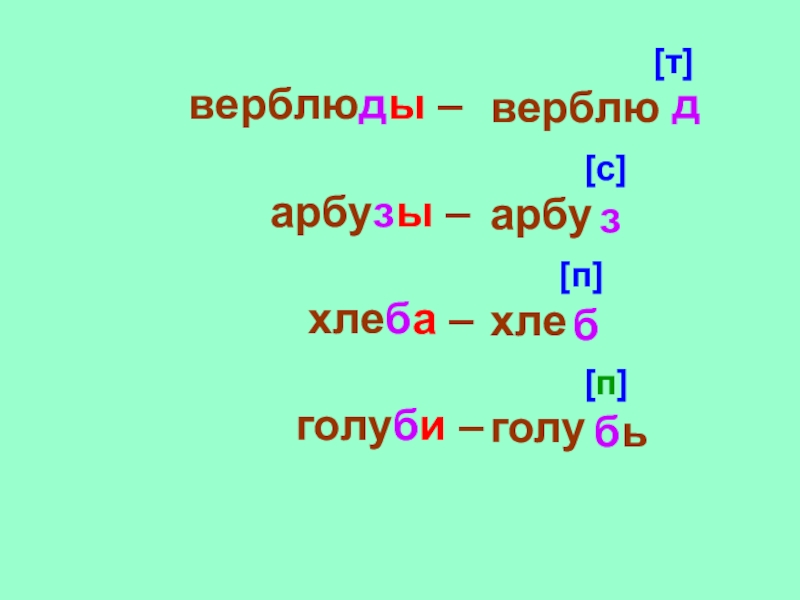 верблюарбухлеголу[т][с][п][п]верблюды – дарбузы – зхлеба – бголуби – бь