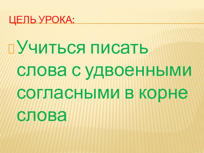 Цель урока:Учиться писать слова с удвоенными согласными в корне слова
