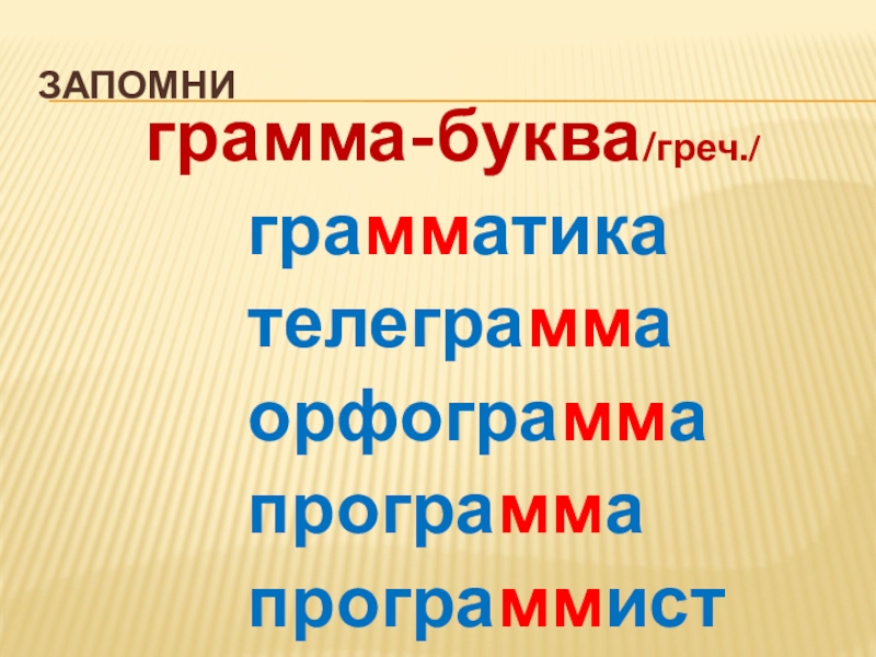 Запомниграмма-буква/греч./      грамматика      телеграмма