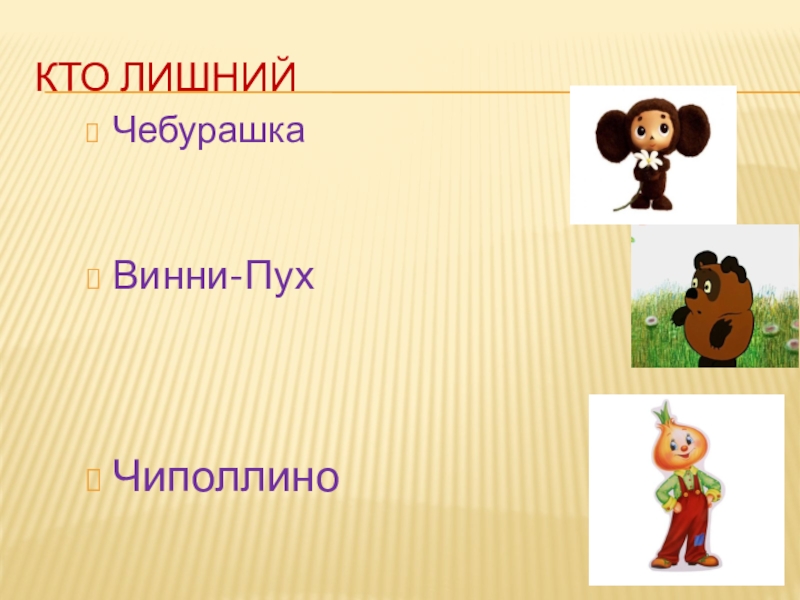 Кто лишнийЧебурашкаВинни-ПухЧиполлино