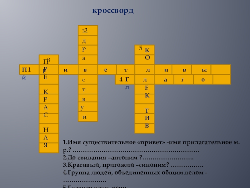 1.Имя существительное «привет» -имя прилагательное м.р.? .……………………………………………………