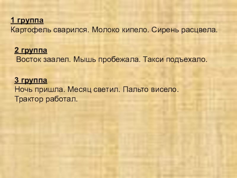 Ночь пришла. Месяц светил. Пальто висело. Трактор работал.