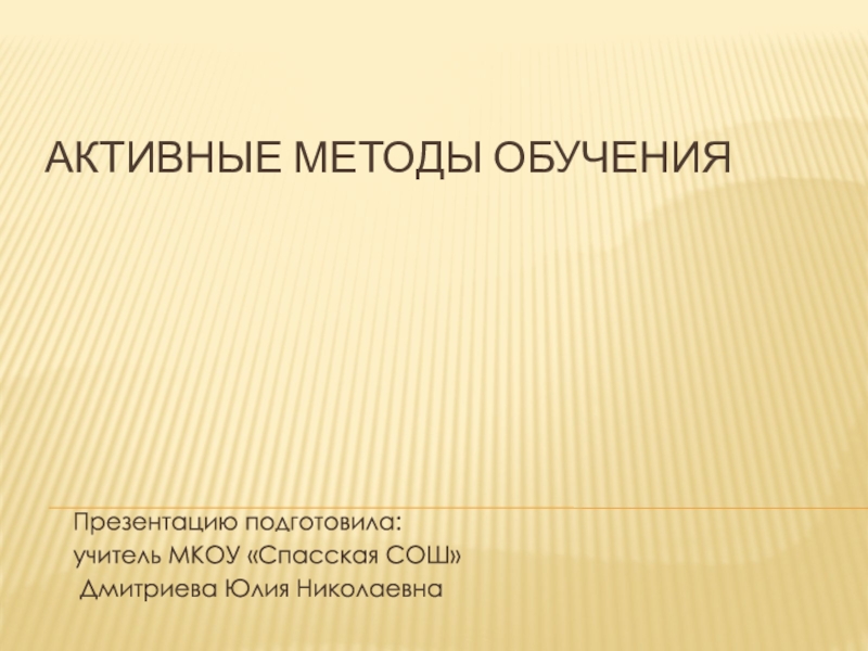 Активные методы обучения Презентацию подготовила: учитель МКОУ «Спасская СОШ» Дмитриева Юлия Николаевна