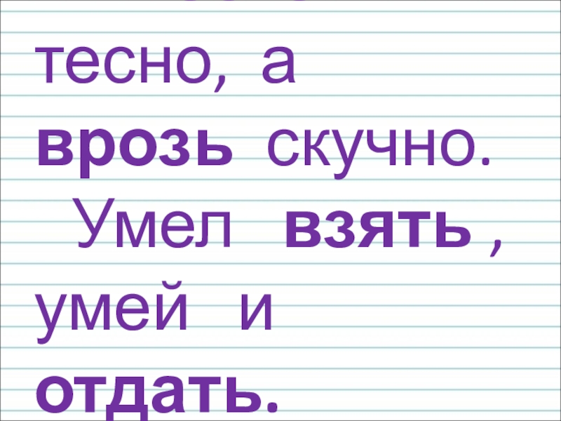 Слайд 7 Вместе тесно, а врозь скучно. Умел взять