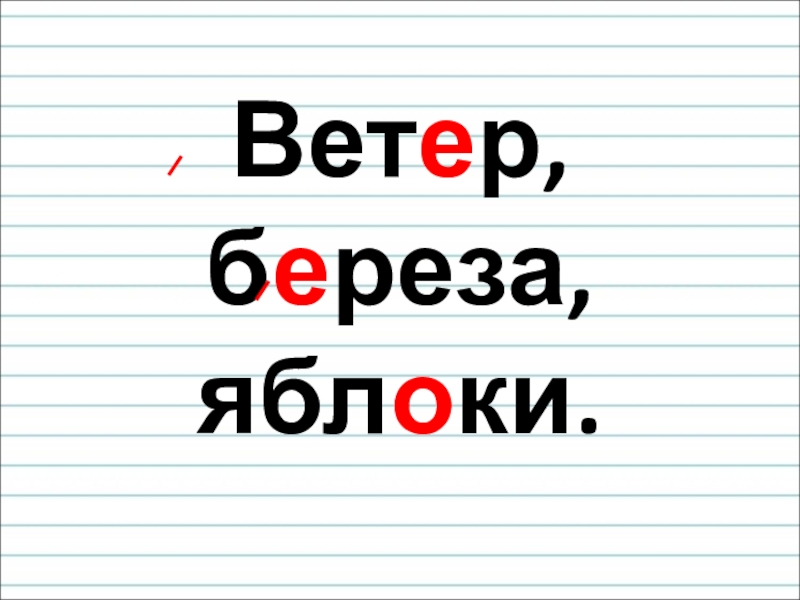 Слайд 4 Ветер, береза, яблоки.