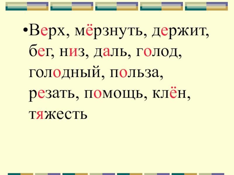Верх, мёрзнуть, держит, бег, низ, даль, голод, голодный, польза, резать, помощь, клён, тяжесть