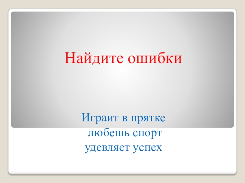 Играит в прятке  любешь спорт  удевляет успехНайдите ошибки