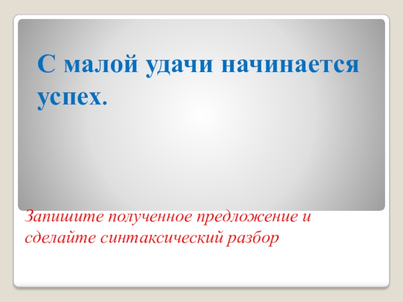 Запишите полученное предложение и сделайте синтаксический разборС малой удачи начинается успех.