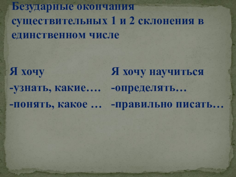 Приложение к уроку русского языка на тему «Безударные окончания существительных 1 и 2 склонения в единственном числе»