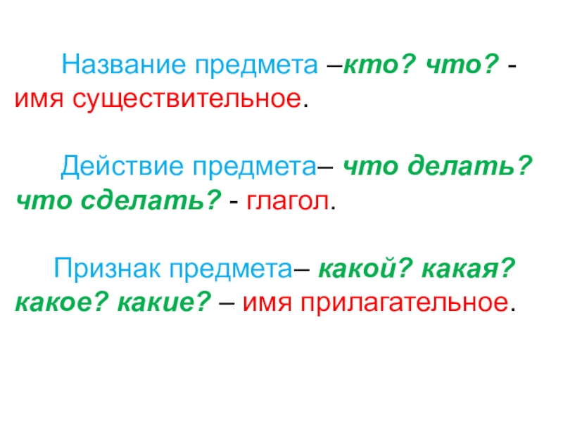 Признак предмета– какой? какая? какое? какие? – имя прилагательное.