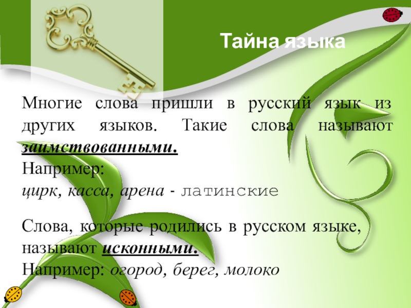 Слова, которые родились в русском языке, называют исконными.