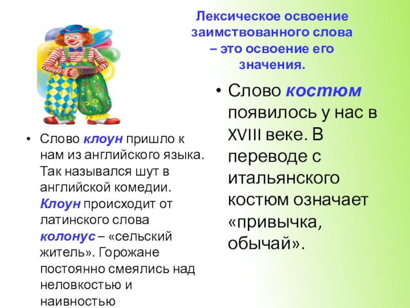 Слово костюм появилось у нас в XVIII веке. В переводе с итальянского костюм означает «привычка, обычай».