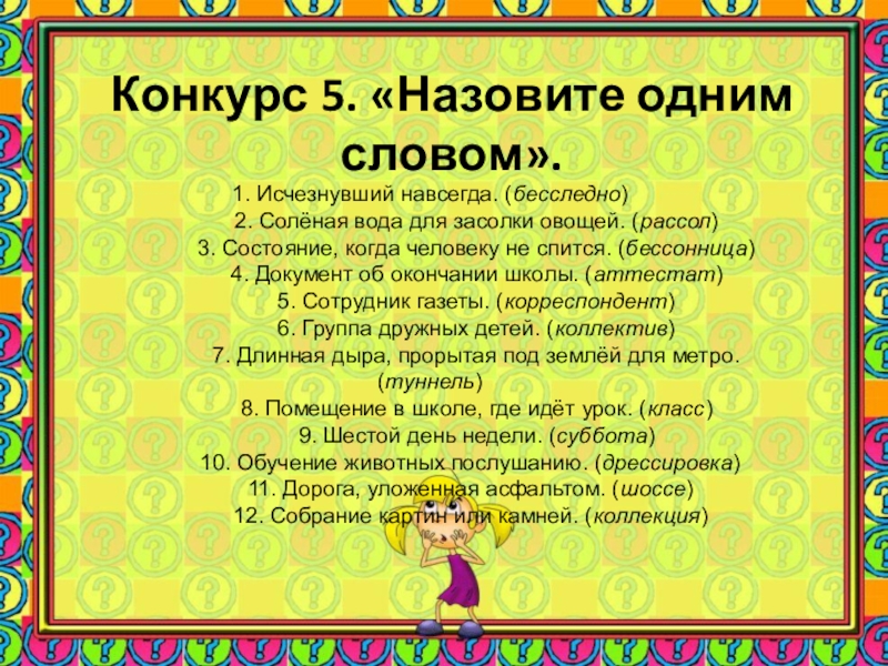 Слайд 9Конкурс 5. «Назовите одним словом».