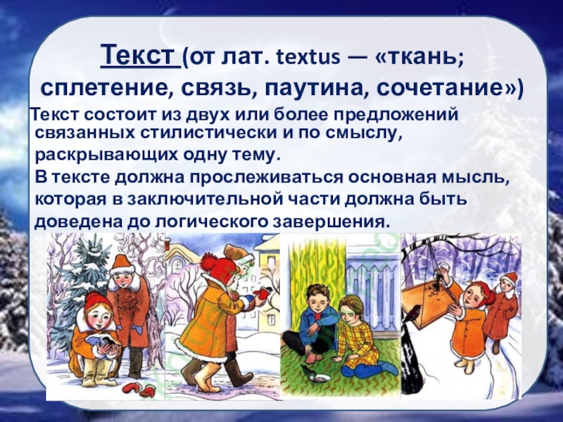 В тексте должна прослеживаться основная мысль, которая в заключительной части должна быть доведена до логического завершения.
