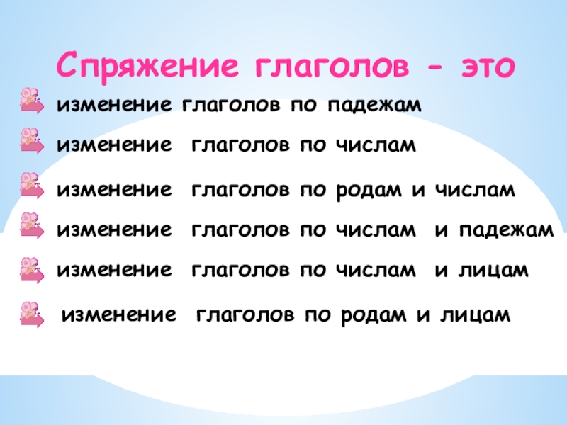изменение глаголов по числам и падежам