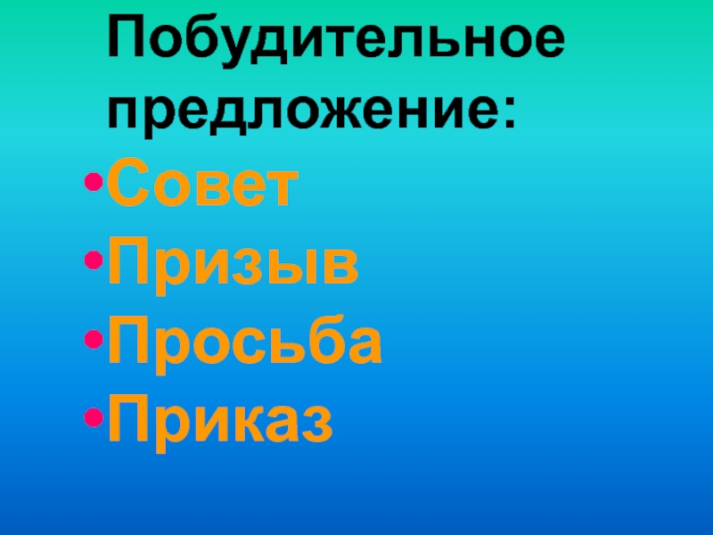 Побудительное предложение:СоветПризывПросьбаПриказ