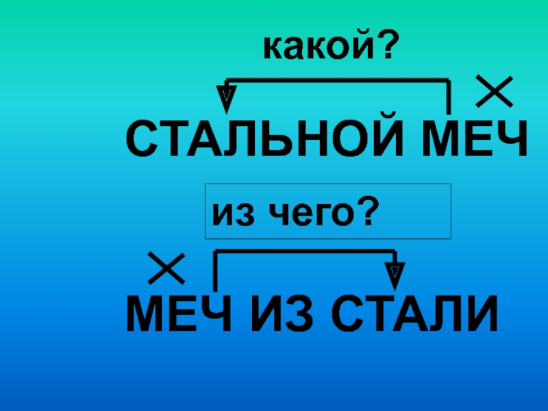 СТАЛЬНОЙ МЕЧМЕЧ ИЗ СТАЛИиз чего?какой?