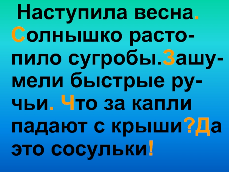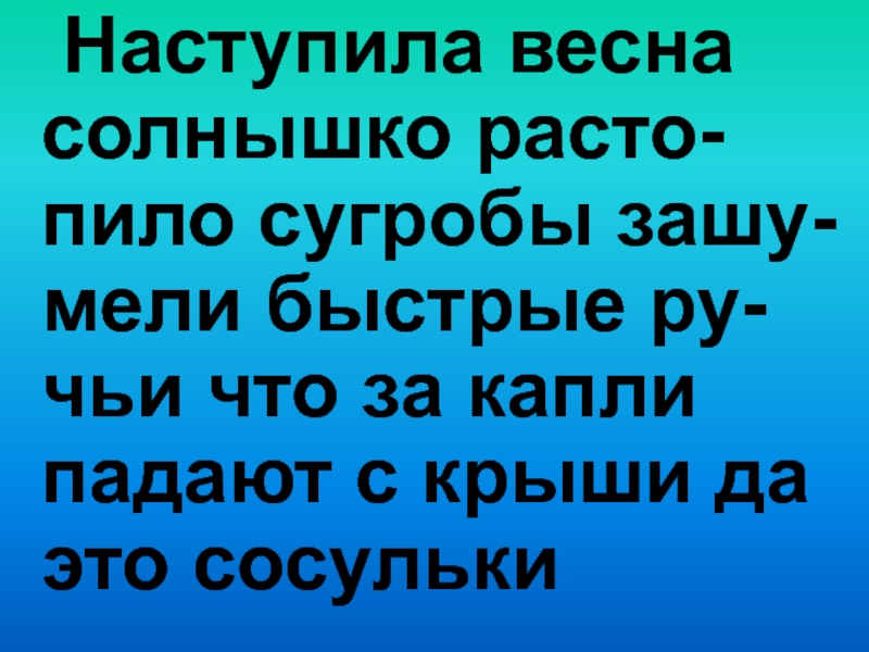 Наступила весна солнышко расто-пило сугробы зашу-мели быстрые ру-чьи что за капли падают с крыши