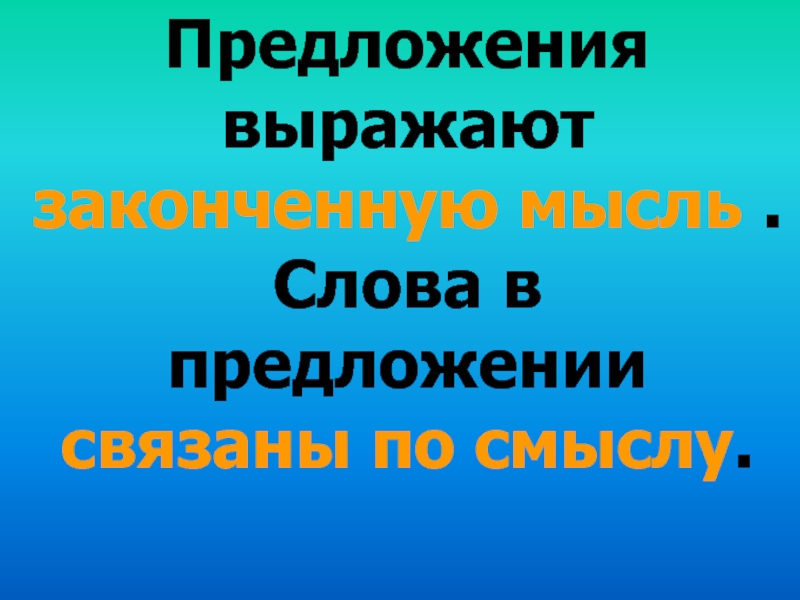 Предложения выражают законченную мысль . Слова в предложении связаны по смыслу.