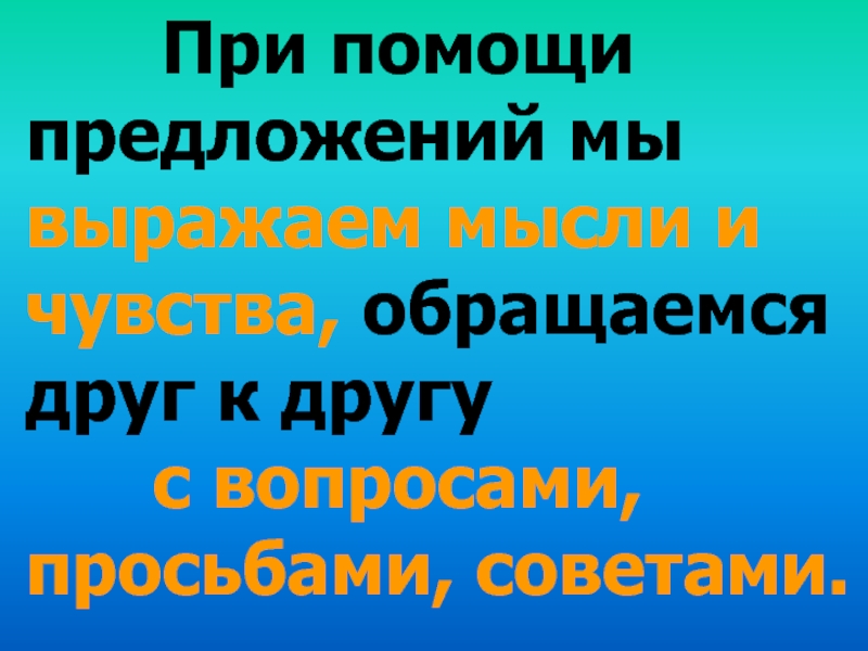 При помощи    предложений мы выражаем мысли и чувства, обращаемся друг к